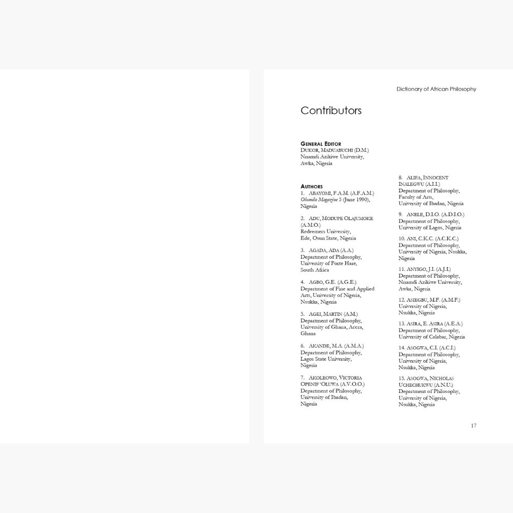 A fellow of the Nigerian Academy of Letters and member of the Aristotelian Society of Great Britain, Prof. Dukor has been columnist for major newspapers, such as The Guardian Nigeria and Champion, and editorial board member for academic journals including Nnamdi Azikiwe University Journal of Philosophy, Journal of Black Studies, Open Journal of Philosophy, or Global Journal of History and Culture, among others. He is also the founder and Editor-in-Chief of Essence Library (NATCOM–UNESCO recognised centre in Nigeria) and Essence: Interdisciplinary-International Journal of Concerned African Philosophers.