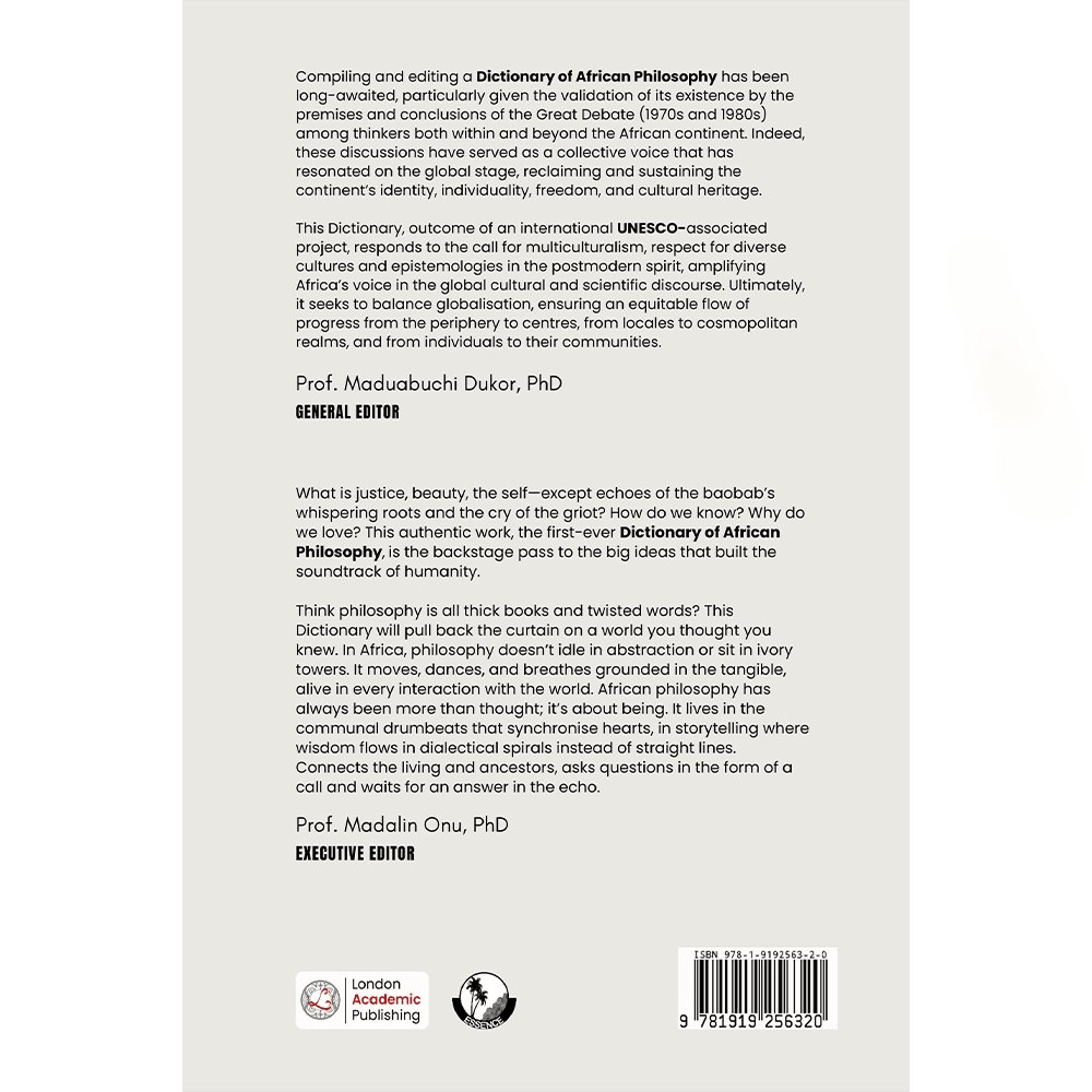 This first-ever Dictionary of African Philosophy emerges from a long-awaited intellectual journey—one grounded in the Great Debate of the 1970s–80s and validated by thinkers across and beyond the continent. Born of an international UNESCO-associated project, it answers the call for multiculturalism and the recognition of diverse epistemologies in the postmodern world, restoring balance in a global landscape where ideas must flow not only from centres to peripheries, but also the other way around.